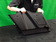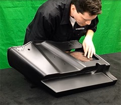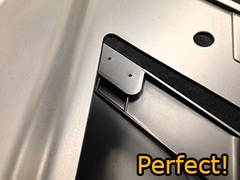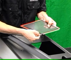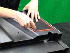 Carefully align and press the grill in place. Get it right the first time! You might not be able to get it off once it has made contact. Apply as much pressure as you can with your hands all around the mounting surface of the grill. The adhesive tape will continue to form a bond over the next 24 hours. However, you can continue the rest of the installation immediately.