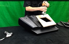 Lay the bag down on a flat surface with the hinge side facing up. Tip: Tape the inside of the bag with a bright colored masking tape. 3M makes a nice yellow tape that can be found at any auto body paint store.