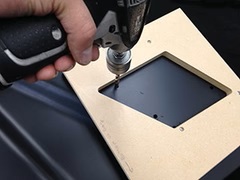 Once all four of the mounting holes have been marked, remove the woofer mount and drill the holes out with an angle adapter and a 3/16" hex shaft drill bit. You can find quality angle adapters at your local hardware store for about $20.