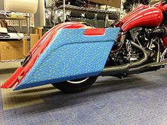 Tape off the entire side of the bag that faces the wheel of the bike as well as the opposing side that faces away from the bike. The tape will form a protective barrier and keep your paint in pristine shape while you work on the bag. Use 3M "EdgeLock" masking tape. You can find this tape at most paint stores. EdgeLock tape is made for delicate surfaces and will not damage your paint. Regular masking tape may work fine for you, but you run the risk of the paint coming off with the tape when removed in the event that the bag was not properly prepped before it was painted. Just get the good stuff and don't risk it! Note: Several of the pictures in this instruction set show a bag with no protective masking tape. This is to make the installation photos appear less cluttered. Always mask your bag off before working on it.
