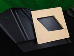 Apply the double sided 3M Adhesive onto the grill. The grill will be mounted from the inside of the bag. Tip: Use a corner of a razor blade to pick the red film off of the double sided tape.