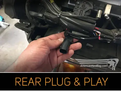 Ultra Models: Under the seat at the tour pack quick disconnect point.